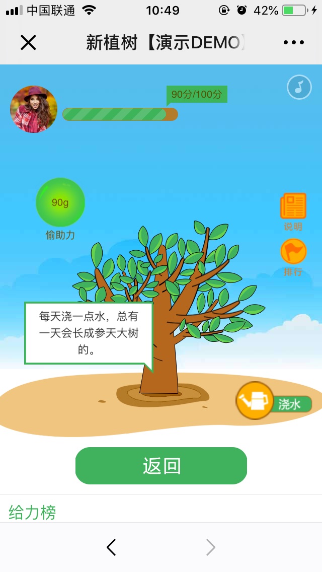 【游戏说明】邀请好友助力一起种树,还可以偷积分,乐趣十足。游戏推广效果显著,以小成本,增长了大数量的粉丝。